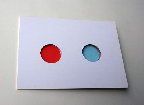 coloured note paper sticked on back of red paper then it goes true the center of the paper