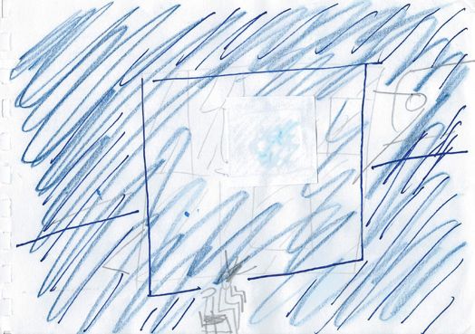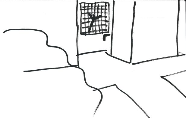 my neighbor’s garage has a double security system: a remote-operated gate and a remote-controlled door. when the (yellow) owner pulls into the garage, the garage door makes a familiar “wa-wa” sound (like the studied sound of a porn diva) as it closes behind him and he enters his apartment. he assumes he’s safe, but it is possible that someone might sneak in during his absence (blue). his certainty is only an illusion. the repetitive nature of the event increases the chance of error, creating a moment of suspense. the porn diva sighs her wa-wa as the garage door shuts.