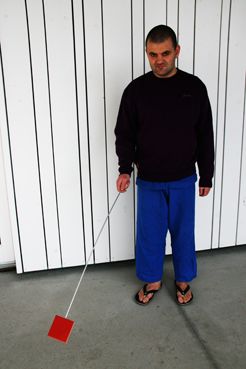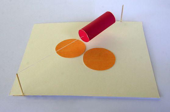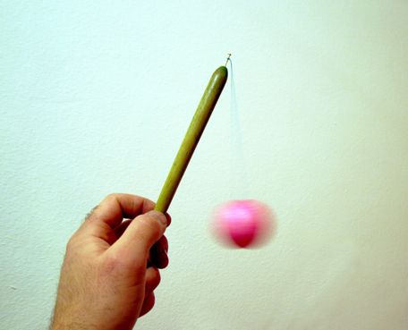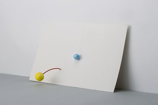go on, wood+nail+tread+foam ball, 30 x 5 x 5 cm