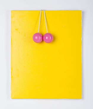 ass walk, painting, 50 x 40 x 10 cm, canvas/graffiti spray/rope/plastic balls/acrylic enamel