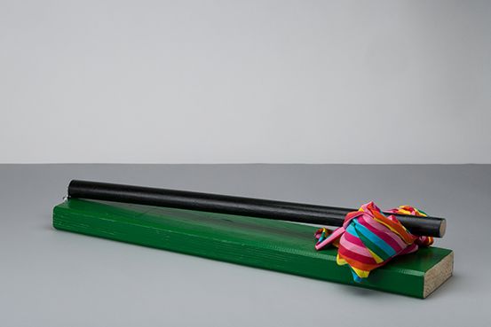 what is this? (holder for everything), object, wood+fabric+acrylic enamel+hinge, 75 x 15 x 10cm how to look at object – on video