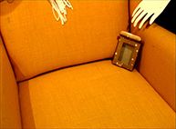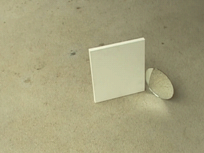 alone, how to look at an object – on video, canvas/mirror/metal hinge/glue, 25x43x2 cm, the object is placed on the floor