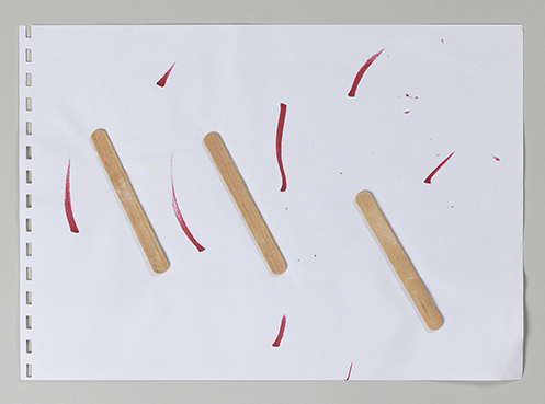 three, paper, wood sticks, felt tip pen, 21x29cm
